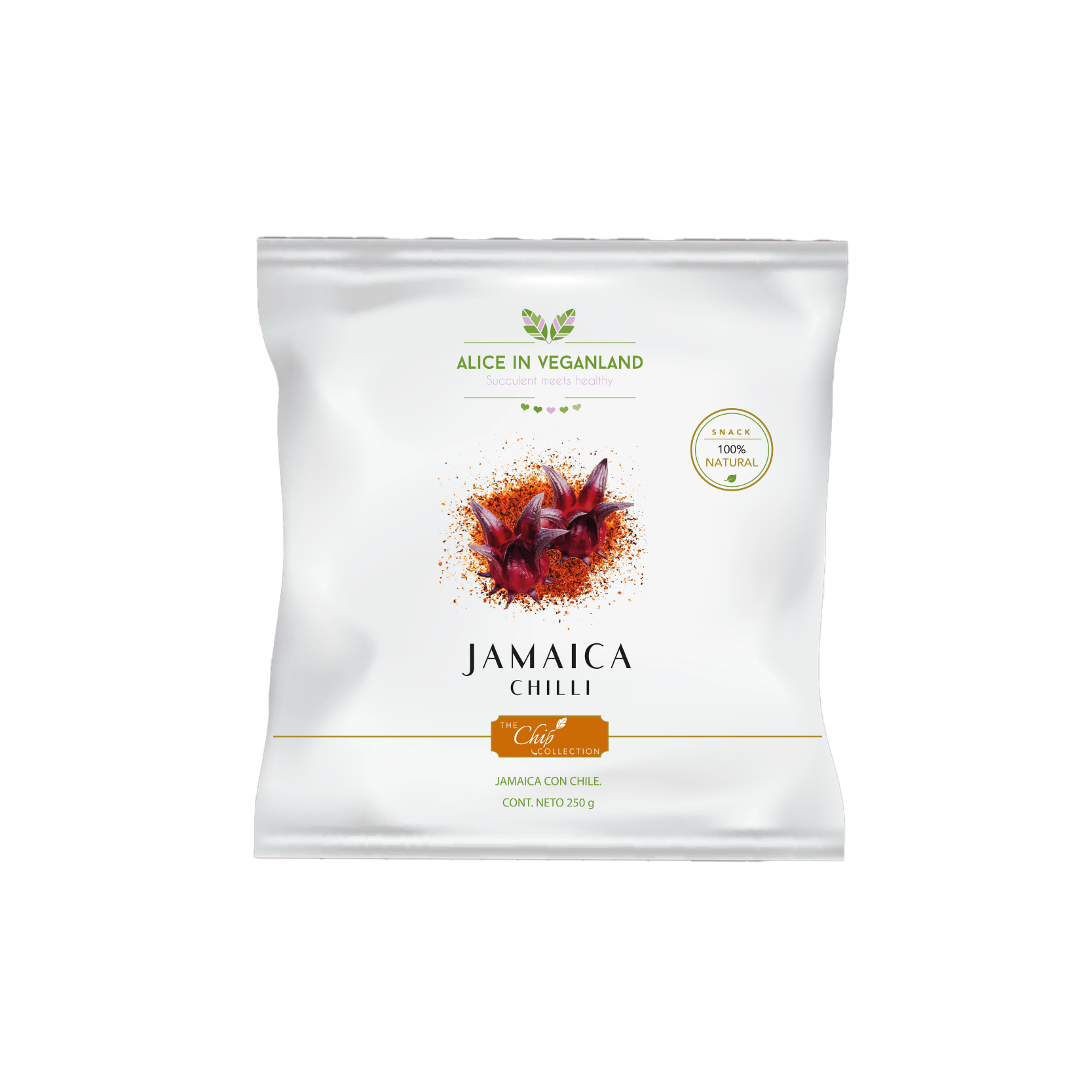 Deliciosa flor de Jamaica deshidratada con manzana y chile, 0% grasa. El mejor snack para toda la familia. Bolsa de 250 g.