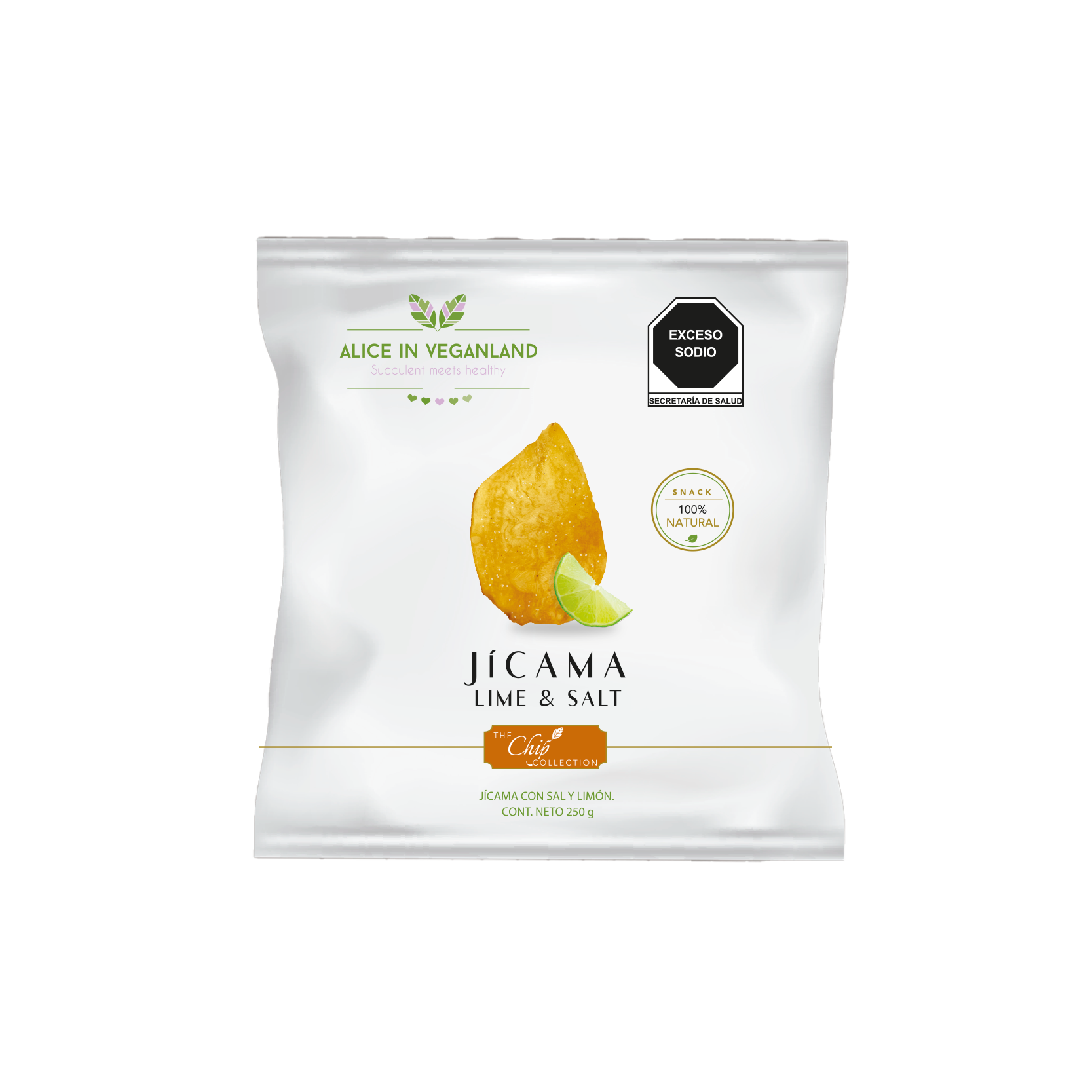 Deliciosas chips de jícama limón y sal deshidratada con un sabor único y textura crujiente que satisface tu antojo. Prueba la diferencia de calidad y transparencia que ofrece Alice in Veganland