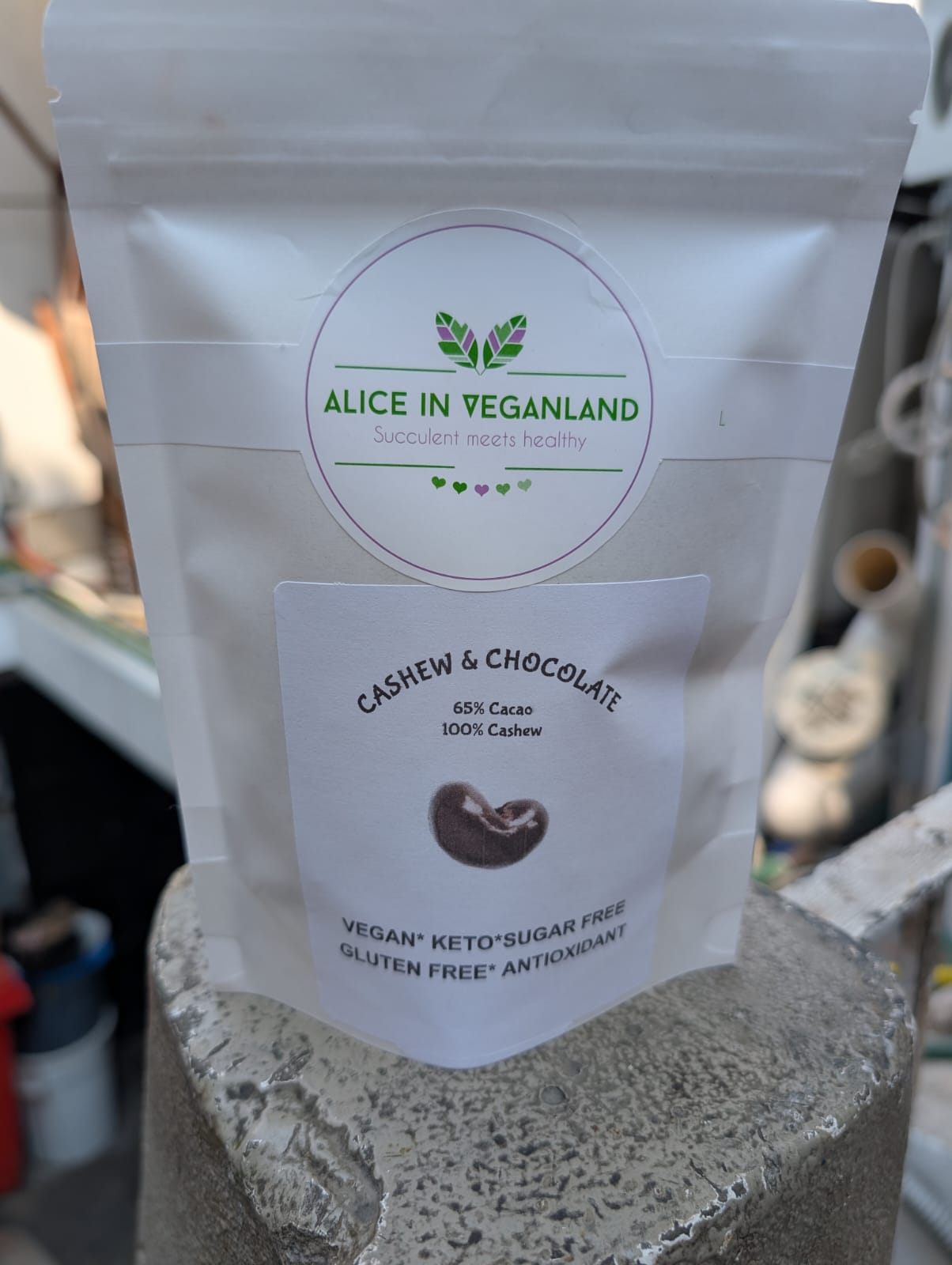 VEGAN Nuez de la India cubierta de chocolate sin azúcar